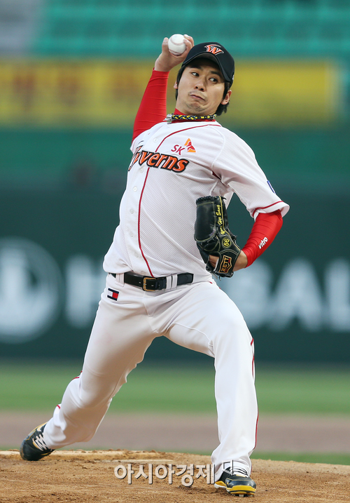 [인천=아시아경제 정재훈 기자] 26일 오후 인천 문학야구장에서 열린 '2013 한국야쿠르트 세븐프로야구' SK 와이번스와 한화 이글스의 경기. SK 선발투수 윤희상이 역투하고 있다.정재훈 기자 roze@<ⓒ세계를 보는 창 경제를 보는 눈, 아시아경제(www.asiae.co.kr) 무단전재 배포금지>
