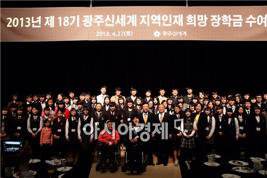 광주신세계(대표이사 유신열)는 27일 제18기 광주신세계 지역인재 희망 장학금 수여식을 가졌다.이날 수여식에서 광주신세계는 장학생으로 선발된 중앙여고 임민선 학생 등 100명의 학생에게 총 1억원의 장학금을 전달하고 격려했다.이 자리에서는 또 봉사활동 실적이 우수한 전남고 박현준, 동아여고 이향련 학생에게 특별상이 전달됐다. 이날 행사에 참석한 경신여고 김수현 학생은 “매년 광주신세계 장학금을 통해 수많은 선배들이 지역을 이끄는 인재로 성장한 사례들을 많이 접해왔다”며 “이번 행사에서 광주신세계가 장학생으로 선발해 준 것에 대해 감사한 마음을 가지고 있다. 지역의 발전을 견인하는 훌륭한 인재로 거듭날 수 있도록 학업에 더욱 정진하겠다”고 말했다.광주신세계 유신열 대표이사는 “광주신세계 희망 장학금을 받은 원년 수혜 학생이 어느덧 성인이 되어 지역발전에 이바지하고 있는 인재로 성장했다는 소식을 접할때가 가장 뿌듯하다”면서 “광주신세계의 대표적인 지역친화 사업으로써 매년 꾸준히 진행돼 오고 있는 ‘광주신세계 지역인재 희망 장학금 수여식’이 앞으로도 지역의 일꾼을 양성하는데 커다란 힘이 될 수 있도록 지원을 아끼지 않을 것"이라고 밝혔다.한편, 광주신세계는 광주·전남 지역 54개 고등학교장의 추천을 받아 54명을 선발했고, 나머지 46명은 어린이 재단, 장애인 총연합회, 다문화가족 지원센터 등 유관기관을 통해 추천받아 각각 100만원씩의 장학금을 전달했다.정선규 기자 sun@ <ⓒ세계를 보는 창 경제를 보는 눈, 아시아경제(www.asiae.co.kr) 무단전재 배포금지>