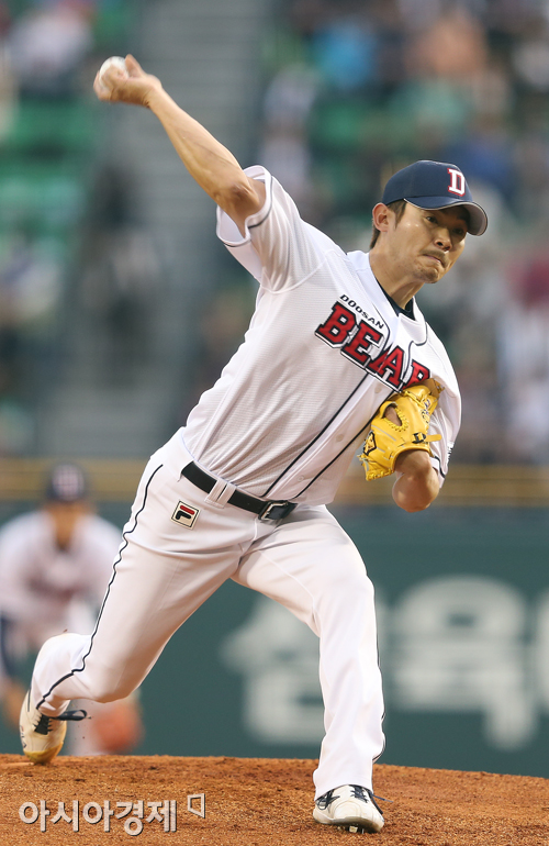 [아시아경제 정재훈 기자] 30일 오후 서울 잠실야구장에서 열린 '2013 한국야쿠르트 세븐프로야구' 두산 베어스와 KIA 타이거즈의 경기. 두산 노경은이 역투하고 있다.정재훈 기자 roze@<ⓒ세계를 보는 창 경제를 보는 눈, 아시아경제(www.asiae.co.kr) 무단전재 배포금지>