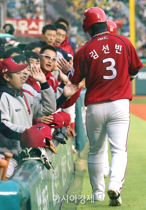 [아시아경제 정재훈 기자] 30일 오후 서울 잠실야구장에서 열린 '2013 한국야쿠르트 세븐프로야구' 두산 베어스와 KIA 타이거즈의 경기. 1회초 1사 2,3루 상황 나지완의 2타점 적시타에 2,3루 주자 이용규, 김선빈이 홈인하고 있다.정재훈 기자 roze@<ⓒ세계를 보는 창 경제를 보는 눈, 아시아경제(www.asiae.co.kr) 무단전재 배포금지>