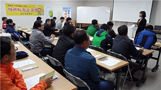 [아시아경제 박성호]4회차로 확대…문학기행 등 통한 아버지의 학교 참여 유도토요일 봄날 아침, 아버지들이 늦잠 즐기기를 기꺼이 포기하고 ‘HAPPY 염주’ 다목적실로 아버지들이 삼삼오오 모여든다.광주 염주초등학교(교장 문재옥)는 지난 20일부터 ‘교육복지학교’ 활동의 하나로 광주 서구건강가정지원센터와 연계한 ‘찾아가는 아버지 학교’를 운영하고 있다.염주초는 작년 아빠와 함께하는 문학기행을 통해 어머니뿐 아니라 아버지의 학교 참여를 이끌어 뜨거운 관심과 호응을 일으킨 바 있다.