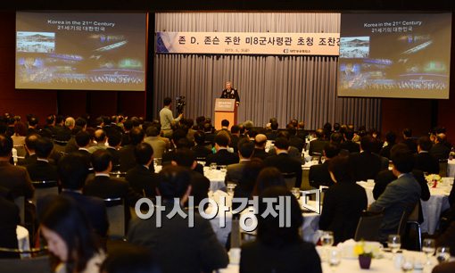 [아시아경제 백소아 기자] 3일 서울 중구 대한상공회의소에서 열린 조찬간담회에서 존 D. 존슨 주한 미8군 사령관이 '최근 한반도 정세와 한미 안보협력 방향 '을 주제로 강연 하고 있다.백소아 기자 sharp2046@<ⓒ세계를 보는 창 경제를 보는 눈, 아시아경제(www.asiae.co.kr) 무단전재 배포금지>