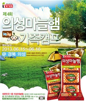 [아시아경제 이광호 기자]롯데푸드는 제4회 '의성마늘햄 1박 2일 가족캠프'를 오는 6월15일 개최한다고 7일 밝혔다. 의성마늘햄 캠프는 마늘캐기 체험(황금 의성마늘을 찾아라), 가족 요리대회, 온천욕, 쉐프의 요리와 함께 즐기는 저녁 파티 등 온 가족이 함께 즐길 수 있는 다양한 가족 체험형 프로그램들이 진행될 예정이다. 의성마늘햄 캠프의 참여를 원하는 가족이라면 누구나 응모할 수 있다. 신청은 롯데푸드 공식 홈페이지(www.lottefood.co.kr)에서 27일까지 진행된다. 의성마늘햄 캠프 참여하기 이벤트 게시판에 의성마늘햄과 함께한 다양한 사진을 올리면 자동응모 되며, 당첨자 25가족은 오는 6월3일 롯데푸드 공식 홈페이지에서 확인이 가능하다.의성마늘햄 브랜드 매니저는 "의성마늘햄을 사랑해 주시는 고객들의 성원에 보답하고 아울러 고객들과 함께하는 1박 2일 간의 캠프를 통해 고객들에게 한걸음 더 가까이 다가가고자 이번 캠핑 프로모션을 진행하게 됐다"며 "앞으로도 많은 사랑과 관심을 부탁드린다"고 말했다. 이광호 기자 kwang@<ⓒ세계를 보는 창 경제를 보는 눈, 아시아경제(www.asiae.co.kr) 무단전재 배포금지>