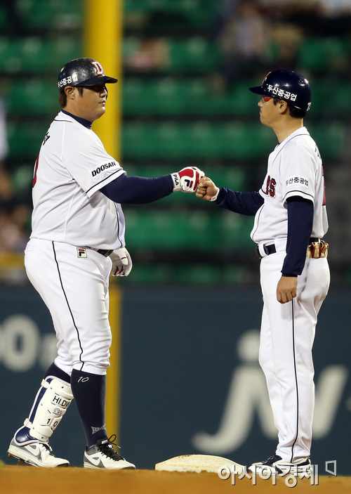 [아시아경제 정재훈 기자] 14일 오후 서울 잠실야구장에서 열린 '2013 한국야쿠르트 세븐프로야구' 두산 베어스와 삼성 라이온즈의 경기. 7회말 2사 1,2루 상황 최준석이 대타로 나와 1타점 적시타로 2루주자 김현수를 홈으로 불러들이고 있다.정재훈 기자 roze@<ⓒ세계를 보는 창 경제를 보는 눈, 아시아경제(www.asiae.co.kr) 무단전재 배포금지>