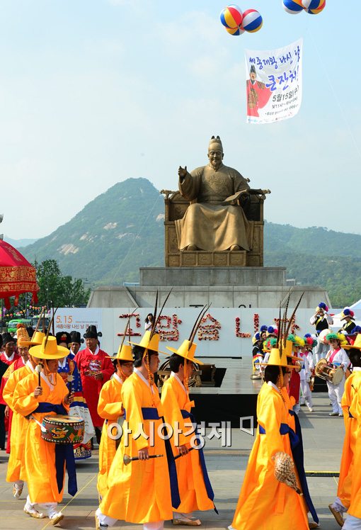 [아시아경제 백소아 기자] 종로구가 세종마을 선포 2주년을 맞은 15일 서울 세종로 광화문광장에서 '어가행렬'을 재현하고 있다. 이날 김영종 종로구청장은 세종대왕으로 어가행렬에 참석했다.백소아 기자 sharp2046@<ⓒ세계를 보는 창 경제를 보는 눈, 아시아경제(www.asiae.co.kr) 무단전재 배포금지>