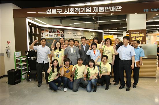 지난해 6월 전국 최초로 이마트 하월곡점 내 문을 연 성북구사회적기업 제품 판매관.<br />
