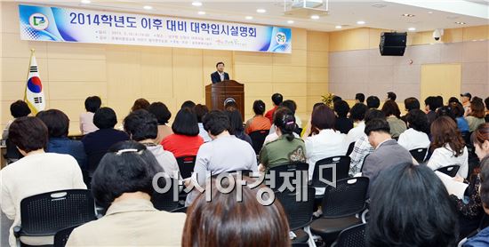 광주 남구(구청장 최영호)는 지난 15일 오후 신청사 대회의실에서 중·고등학생, 학부모, 교육관계자 등 400여명이 참석한 가운데 2014학년도 이후 대비 대학입시설명회를 개최했다. 사진제공=광주시 남구노해섭 기자 nogary@<ⓒ세계를 보는 창 경제를 보는 눈, 아시아경제(www.asiae.co.kr) 무단전재 배포금지>