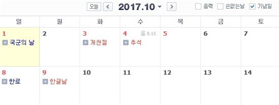 2017년 황금 연휴 (출처 : 네이버 달력 정보)