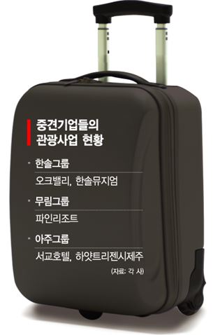 [아시아경제 이정민 기자]중견기업들이 문화 예술 사업에 역량을 쏟고 있다. 미술관을 세우거나 호텔을 리모델링하는 등 '고객 모시기'에 나섰다. 22일 업계에 따르면 한솔그룹(회장 조동길)은 지난 16일 강원도 원주 소재 오크밸리 리조트 내 전원형 문화 예술공간인 '한솔뮤지엄'을 열었다. 지난 2005년 공사를 시작으로 8년만에 개관한 이곳은 7만1172㎡ 부지에 5445㎡의 전시 공간을 보유해 국내 최대 규모를 자랑한다. 세계적인 예술품뿐만 아니라 이인희 한솔그룹 고문의 소장품도 전시돼 볼거리가 다양하다는 것이 한솔의 설명이다. 한솔 관계자는 "고품격 리조트인 한솔오크밸리 내 전원형 복합문화예술공간이 들어섬으로써 사회 공헌 활동은 물론 오크밸리와의 시너지 효과가 기대된다"고 말했다.공사에 투입된 금액은 400억원이 넘는다. 오광수 관장은 "(한솔뮤지엄은) 도시를 벗어나 쉼표를 찍는 공간, 자연과 인간, 예술이 어우러진 휴식과 명상, 치유의 공간이 될 것"이라고 설명했다.무림그룹(회장 이동욱)도 파인리조트 운영으로 관광사업을 키우고 있다. 특히 올해는 무더위가 예상돼 평년보다 일찍 워터파크를 개장했다. 양지 파인리조트는 아예 스키장 슬로프를 워터파크로 갈아엎고 힐빙(힐링+웰빙) 물놀이 시설인 아쿠아 펀을 개장했다. 또한 다음달 1일부터 9월30일까지 서울 한강시민공원 내 야외수영장 4곳을 위탁 운영한다. 영업 활성화를 위해 파인리조트의 다양한 시설을 활용한 공동 마케팅을 진행할 예정이다. 아주그룹(회장 문규영)도 관광사업에 집중하고 있다. 최근에는 13층짜리 서울 마포구 서교호텔을 22층으로 증축하기로 했다. 공항철도가 연결되면서 외국인들이 많이 찾고 있기 때문이다. 이번 증축으로 135개의 객실이 366개로 늘어나 많은 관광객을 유치할 수 있게 됐다. 지난 2000년 인수한 하얏트리젠시제주호텔의 리모델링 작업도 진행 중이다. 온돌객실인 디럭스룸 리모델링에 이어 야외 수영장도 개ㆍ보수할 예정이다. 아주그룹 관계자는 "가족 단위 국내 관광객도 많고 중국인 관광객도 늘어나고 있어 기대가 크다"고 설명했다. 이에 사측은 일찌감치 패키지 상품을 출시해 관광객 맞이에 나섰다. 중견그룹들의 이같은 행보는 문화 예술 관광 시장의 발전 가능성 때문이다. 최근 발표된 한국은행 조사에 따르면 지난해 우리나라 전체 가계의 소비 지출액 가운데 교육비와 교통ㆍ통신 지출 비중은 줄었지만 레스토랑과 호텔 등 외식ㆍ여행과 연관있는 음식숙박 관련 지출 비율은 8.1%(53조7096억원)로 전년과 비중이 같았다. 국민들이 경기불황에 생활비는 줄이고 있지만 여가비용은 유지하고 있는 셈이다. 업계 관계자는 "문화 예술 관광 산업이 꾸준히 성장하면서 중견그룹들도 새로운 성장동력으로 삼고 있다"고 설명했다.이정민 기자 ljm1011@<ⓒ세계를 보는 창 경제를 보는 눈, 아시아경제(www.asiae.co.kr) 무단전재 배포금지>이정민 기자 ljm1011@<ⓒ아시아 대표 석간 '아시아경제' (www.newsva.co.kr) 무단전재 배포금지>