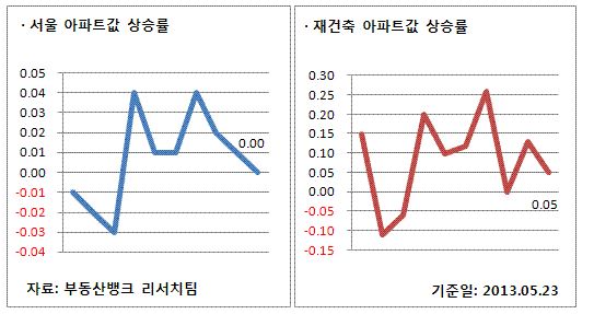 [아시아경제 한진주 기자] 서울 재건축아파트 매매가가 7주 연속 상승세를 기록했다.23일 부동산뱅크에 따르면 5월4주차 재건축아파트(0.05%)와 일반아파트(0.02%) 매매가격은 올랐고 주상복합(-0.03%)은 하락했다.재건축 대상 아파트는 강남구(0.12%)에서 가장 많이 올랐고 강동구(0.11%), 용산구(0.02%)등에서도 올랐다. 관악구(-1.22%)는 떨어졌다.중개업소들은 재건축 아파트 호가는 올랐지만 거래는 크게 줄었다는 반응이다. 강동구 둔촌동 둔촌주공3단지 112㎡(이하 전용면적 기준)는 지난주보다 5500만원 오른 7억6500만원에 시세가 형성됐다. 강남구 대치동 은마아파트 102㎡는 일주일 새 2300만원이 올라 7억9000만원에 매물이 나왔다.일반아파트는 중구(0.51%), 송파구(0.21%), 마포구(0.2%), 금천구(0.19%), 성동구(0.11%)등이 올랐고 도봉구, 서초구, 성북구 등은 지난주와 같았다. 매매가가 하락한 지역은 동작구(-0.17%), 강남구(-0.17%), 노원구(-0.09%) 등이었다. 경기도는 부천시(0.29%)가 가장 많이 올랐고 양주시(-0.31%), 광명시(-0.14%)등은 하락했다. 수도권 외 지역에서는 대전시(0.3%), 대구시(0.05%)가 올랐고 부산시(-0.01%)는 떨어졌다.장재현 부동산뱅크 콘텐츠비즈니스팀장은 "재건축아파트 가격만 오르고 주변 아파트 매매가는 그대로인 상태"라며 "4·1대책 이후 집주인들의 기대심리가 높아져 호가를 높게 부르고 있지만 수요자들은 관조세를 유지하고 있어 거래가 활발하지는 않다"고 설명했다.한진주 기자 truepearl@<ⓒ세계를 보는 창 경제를 보는 눈, 아시아경제(www.asiae.co.kr) 무단전재 배포금지>