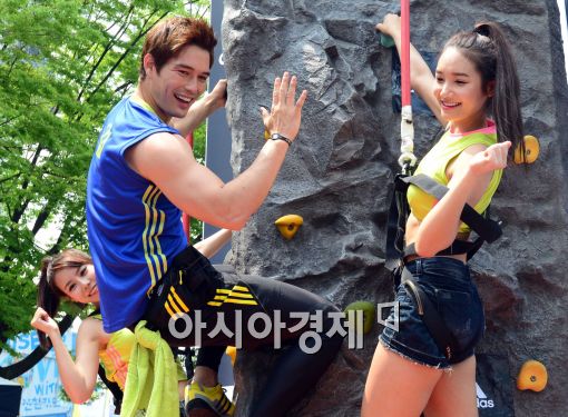 [아시아경제 최우창 기자]26일 남산N서울 타워 팔각정 광장에서 '2013 아디다스 락스타 서울 볼더링 대회'가 열린 가운데 대회장을 찾은 배우 리키 김이 체험존에서 볼더링 실력을 선보이고 있다. 최우창 기자 smicer@<ⓒ세계를 보는 창 경제를 보는 눈, 아시아경제(www.asiae.co.kr) 무단전재 배포금지>