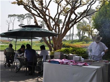 파인스톤골프장의 즉석바비큐 요리 장면.