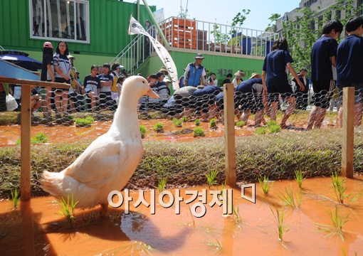 [아시아경제 백소아 기자] 제2회 서울도시농업 박람회가 시작된 30일 서울 중구 서울광장 모내기 생태 체험장에서 어린이들이 직접 모내기를 하고 있다.백소아 기자 sharp2046@<ⓒ세계를 보는 창 경제를 보는 눈, 아시아경제(www.asiae.co.kr) 무단전재 배포금지>