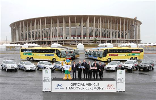 [아시아경제 조슬기나 기자]FIFA 자동차 부문 공식후원사인 현대·기아자동차가 ‘2013 FIFA 컨페더레이션스컵(FIFA Confederations Cup, 이하 대륙간컵)’ 대회 공식 차량을 제공한다.현대·기아차(회장 정몽구)는 30일(현지 시간) 브라질 브라질리아 국립경기장에서 공식 차량을 조직위원회에 전달하는 행사를 가졌다고 밝혔다.현대·기아차는 이번 대회에 8개 참가국 대표팀 공식 차량 및 대회 운영에 필요한 승용차 및 승합차 등 총 500대의 차량을 지원한다. 이 차량들은 FIFA 관계자 등 각계각층 VIP들의 의전과 참가국 대표팀 및 각국 기자단, 자원봉사자의 이동 편의 등 다양한 용도를 위해 활용될 예정이다.현대·기아차는 전세계 축구팬들의 이목을 사로잡을 이번 ‘2013 FIFA 대륙간컵’ 대회에 공식 차량을 지원·하고 지원 차량 및 각국 대표팀 버스에 현대차와 기아차의 대형 로고를 부착하는 등 세계에 현대기아차 브랜드를 널리 알릴 수 있는 자리를 마련했다.또한 현대차는 대회가 시작되는 6월 15일부터 상파울루, 벨루오리존치, 리우데자네이루 등에서 ▲FIFA 후원사들과 공동으로 대규모 길거리 응원전을 개최해 축구팬들에게 특별한 축제의 장을 마련할 뿐만 아니라 ▲경기장 내 홍보 부스 운영 등 다양한 현지 스포츠 마케팅을 적극적으로 전개할 계획이다.이 외에도 대회 시작 전 사전 프로그램으로 축구 선수 및 유명인이 직접 출연하는 바이럴 영상 시리즈 ▲‘로드 투 2013(Road to 2013)’을 제작?배포하고 ▲구매고객 대상 대규모 티켓 응모 행사 등을 진행, 대회 및 현대차에 대한 전세계 축구팬들의 관심을 끌어올릴 예정이다.또한 기아차는 이번 ‘2013 FIFA 대륙간컵’ 대회와 연계한 다양한 이벤트를 마련, 기아차의 젊고 역동적인 이미지를 강조하고 브랜드 인지도를 높일 계획이다.이를 위해 기아차는 전세계 지역 대표(아마추어)를 선발해 브라질 벨루 오리존치에서 아마추어 축구 월드 챔피언을 가리는 ▲‘기아 챔프 인투 더 아레나(Kia Champ into the Arena)’와 각국 시승회 및 온라인 프로모션을 통해 선발된 고객들을 브라질 현지로 초청하는 ▲‘기아 럭키 드라이브 투 브라질(Kia Lucky Drive to Brazil)’ 등 전세계 축구팬들에게 브라질 현지 문화 체험 및 대회 관람 기회를 선사하는 자리를 마련했다.이날 행사에는 이용우 현대차 브라질법인장, 호세 루이즈 간디니 기아차 브라질 대리점 사장 등 현대?기아차 관계자와 제이 뉴하우스 국제축구연맹(FIFA) 브라질 마케팅 대표, 리카르도 트레이드 대회 조직위원회 CEO 등 FIFA 관계자가 참석했다.제이 뉴하우스 FIFA 브라질 마케팅 대표는 “현대·기아차의 차량 지원으로 대회 운영에 큰 도움이 될 것”이라며 “VIP를 비롯한 대회 관계자들의 안전과 이동 편의를 위해 세계적인 자동차 기업인 현대·기아차가 세련된 디자인과 우수한 상품성을 갖춘 차량들을 지원해 줘서 매우 기쁘다”고 소감을 밝혔다.현대?기아차 관계자는 “2013 FIFA 대륙간컵 대회 공식 후원사로서 참가 선수들 및 대회 관계자들에게 대회 기간 동안 최상의 이동 편의를 위해 차량을 제공할 것”이라며, “차량 지원 외에도 대회 기간 동안 다양한 스포츠 마케팅을 선보여 현대·기아차의 브랜드 위상을 한층 높여 나가겠다”고 말했다.FIFA 대륙간컵 축구 대회는 FIFA 산하 6개 대륙 축구연맹 챔피언과 월드컵 우승국, 차기 월드컵 개최국 등 8개국이 맞붙는 국제 축구 대회로 월드컵 한 해 전에 열려 차기 월드컵의 향방을 가늠해 볼 수 있어 ‘미니 월드컵’으로도 불리며, 전세계 축구팬들의 이목을 집중시키는 세계적인 축구 축제다.이번 대회는 개최국 브라질과 2010 남아공월드컵 챔피언 스페인을 비롯해 우루과이, 멕시코, 이탈리아, 타히티, 일본, 나이지리아 등 총 8팀이 참가한 가운데 내달 15일(현지 시간)부터 30일까지 진행된다.조슬기나 기자 seul@<ⓒ세계를 보는 창 경제를 보는 눈, 아시아경제(www.asiae.co.kr) 무단전재 배포금지>