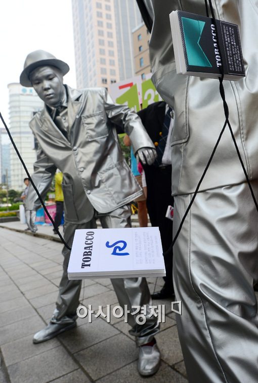 [아시아경제 백소아 기자] 세계 금연의 날을 맞아 31일 서울 중구 프레스센터 앞에서 대학생 금연서포터즈들이 담배에 조정 당하는 흡연자의 모습을 연출한 '마리오네트' 퍼포먼스를 선보이고 있다. 보건복지부는 5월 31일부터 6월 4일까지를 금연주간으로 정하고 서울을 비롯한 5개 지역에서 '진실수레'를 운영하고 생수, 오렌지 등 생필품에 담배 유해성 메시지를 담아 시민들에게 전달할 예정이다.백소아 기자 sharp2046@<ⓒ세계를 보는 창 경제를 보는 눈, 아시아경제(www.asiae.co.kr) 무단전재 배포금지>