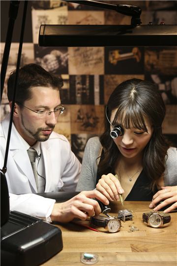 [아시아경제 이초희 기자]현대백화점 압구정본점은 3일 스위스 명품 시계 브랜드 예거 르쿨트르의 부티크 오픈을 맞아 업계 최초로 ‘워치 메이킹 마스터 클래스’를 개최했다. 이 행사에는 예거 르쿨트르의 시계장인 쟈노 뤼도빅(Mr. Zahno Ludovic)이 고객들과 함께 칼리버 875 분해 및 조립을 체험하는 형식으로 진행된다. 이초희 기자 cho77love@<ⓒ세계를 보는 창 경제를 보는 눈, 아시아경제(www.asiae.co.kr) 무단전재 배포금지>