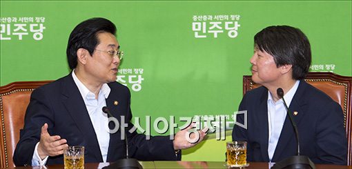 [아시아경제 윤동주 기자] 안철수(오른쪽) 의원이 4일 서울 여의도 국회에서 전병헌 민주당 원내대표를 만나 최근 현안에 대해 이야기를 나누고 있다.윤동주 기자 doso7@<ⓒ세계를 보는 창 경제를 보는 눈, 아시아경제(www.asiae.co.kr) 무단전재 배포금지>