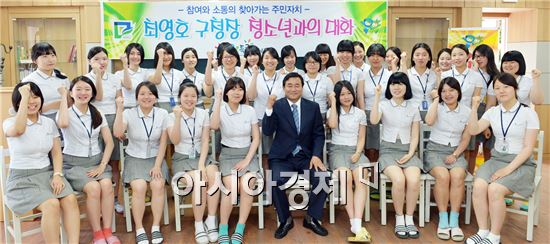 최영호 광주시 남구청장은 4일 오전 광주여자상업고등학교에서 신규주민등록증 발급 학생 35명과 함께 장래희망과 진로에 관한 고민상담 및 대화시간을 가졌다.노해섭 기자 nogary@ <ⓒ세계를 보는 창 경제를 보는 눈, 아시아경제(www.asiae.co.kr) 무단전재 배포금지>