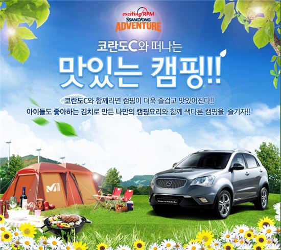 [아시아경제 조슬기나 기자]쌍용자동차(대표 이유일)는 캠핑 시즌을 맞아 오는 22~23일 경기도 양평 별자리 캠핑장에서 코란도C 보유 고객 30개팀을 대상으로 '코란도C와 떠나는 맛있는 캠핑'을 개최한다고 5일 밝혔다.이번 캠핑은 참가자들이 직접 마련한 레시피로 요리대결을 펼치는 등 타 캠핑과 차별화한 특색있는 프로그램들로 구성한 것이 특징이다. '아이들도 좋아하는 나만의 김치요리 레시피'를 주제로 요리 콘테스트를 열어 상위 입상자들에게는 고급캠핑용품 등 상품을 증정한다. 또 인기 가수를 초청해 '코란도 C 미니 콘서트'를 열고, 코란도 투리스모, 렉스턴W 등 프리미엄 RV 라인업 시승기회도 마련했다.참가 모집은 오는 15일까지 코란도 C 보유 고객을 대상으로 쌍용차 공식 페이스북(facebook.com/SsangyongStory)에서 이뤄지며, 김치요리 레시피를 포함한 소정의 양식 작성을 통해 응모할 수 있다.당첨자에게는 개별 통보하며, 아쉽게 선정되지 못한 응모 고객에게도 아이스아메리카노 교환권(50명)을 증정할 예정이다.신영식 쌍용차 마케팅본부 전무는 “쌍용차의 대표 SUV 코란도 C 고객들께 감사의 의미를 담아 요리를 주제로 삼아 특색 있는 행사를 마련했다”며 “더욱 참신하고 알찬 고객 이벤트를 지속적으로 마련해 나가겠다”고 말했다. 조슬기나 기자 seul@<ⓒ세계를 보는 창 경제를 보는 눈, 아시아경제(www.asiae.co.kr) 무단전재 배포금지>