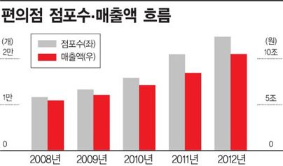같은 피해사례가 이어지자 편의점주들은 협회를 결성해 본사에 맞서 자신들의 권리를 주장하고 있다. 오명석 세븐일레븐 바이더웨이점주 협의회 회장은 "현재 편의점 업계는 편의점 과다출점으로 점주들이 피해를 입어도 가맹본사는 피해를 입지 않는 불합리한 구조"라며 가맹본사가 적극적인 상황 개선에 나서야 한다고 강조했다. 오 회장은 편의점 본사가 편의점주들과의 불공정 계약을 통해 매년 사상 최대 실적을 올리고 있다고도 주장했다. GS25를 운영하는 국내 최대 편의점 업체 GS리테일의 지난해 매출액은 4조5000억원 규모이며 영업이익은 1405억원을 기록했다. 이 회사의 지난해 실적은 지난 2010년보다 매출액은 37% 영업이익은 75% 급증했다. 같은 기간 CU편의점을 운영하는 BGF리테일도 2년 전에 비해 각각 29%, 166% 증가했다. 또한 세븐일레븐을 운영하는 코리아세븐 역시 같은 기간 매출액은 86%, 영업이익은 105% 급증했다. 편의점 본사들의 수익은 편의점 가맹점이 증가할수록 늘어나는 구조다. 이에 따라 편의점 본사들은 가맹점을 신규로 유치하기 위한 치열한 경쟁을 벌여왔고 이 전략이 지금까지 크게 성공한 것으로 평가받는다. 문제는 이런 편의점 출점 경쟁이 고스란히 김씨와 같은 점주들의 피해로 이어지고 있다는 점이다. 때문에 일부 국회의원과 시민단체에서는 현행 공정거래법이 대리점들을 보호하기에는 부족하다며 가맹사업법 개정안을 입법청원했다. 개정안을 대표 발의한 이종걸 민주당 의원은 "전국 곳곳의 지역에서 편의점주들이 자살하는 안타까운 사건이 있었다"며 "개정안 입법을 통해 가맹점 피해가자 더 이상 나올수 없도록 하겠다"고 말했다. 이창환 기자 goldfish@<ⓒ세계를 보는 창 경제를 보는 눈, 아시아경제(www.asiae.co.kr) 무단전재 배포금지>