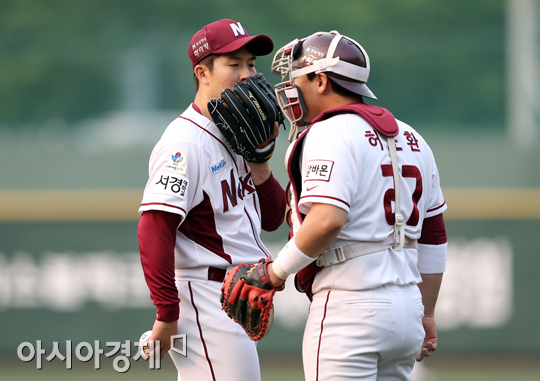 [아시아경제 정재훈 기자] 5일 오후 서울 목동야구장에서 열린 '2013 한국야쿠르트 세븐프로야구' 넥센 히어로즈와 삼성 라이온즈의 경기. 김병현과 허도환이 경기에 앞서 대화를 나누고 있다.정재훈 기자 roze@<ⓒ세계를 보는 창 경제를 보는 눈, 아시아경제(www.asiae.co.kr) 무단전재 배포금지>