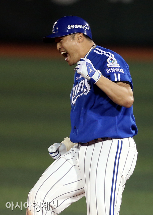 [아시아경제 정재훈 기자] 5일 오후 서울 목동야구장에서 열린 '2013 한국야쿠르트 세븐프로야구' 넥센 히어로즈와 삼성 라이온즈의 경기. 7회초 1사 2루 상황 박한이가 1타점 적시타를 치고 기뻐하고 있다.정재훈 기자 roze@<ⓒ세계를 보는 창 경제를 보는 눈, 아시아경제(www.asiae.co.kr) 무단전재 배포금지>