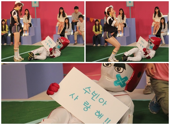 [아시아경제 이금준 기자]프로야구단 넥센 히어로즈의 마스코트 턱돌이가 달샤벳 뮤직비디오에 출연한다.해피페이스엔터테인먼트에 따르면 턱돌이는 오는 20일 공개되는 달샤벳의 신곡 뮤직비디오에 등장, '수빈 앓이' 면모를 이어간다.평소 그라운드에서 공개적으로 수빈을 아끼며 애정을 드러내 온 턱돌이는 이번 뮤직비디오에서도 '수빈아 사랑해'라는 플래카드로 웃음을 자아낼 예정이다.턱돌이와 수빈의 인연은 2011년 5월 넥센 히어로즈와 LG 트윈스 경기에서 수빈이 시구자로 나서며 시작됐다. 당시 10대인 수빈이 시구를 한 후 턱돌이에게 안아달라고 했지만 어리다는 이유로 거부당하자 키스를 하는 퍼포먼스 펼쳐 화제를 모았다.이후 턱돌이는 다른 시구자들에게 "난 오직 달샤벳 수빈"이라며 굴욕을 주는가 하면 수빈이 부상을 당하거나 달샤벳 새 앨범이 나왔을 때 등 여러 차례 공개 응원에 나서는 등 '무한 애정'을 드러냈다.한편, 수빈은 오는 9일 서울 목동야구장에서 열리는 넥센 히어로즈와 KIA 타이거즈 경기에 시구자로 나서 턱돌이와 재회한다.이금준 기자 music@<ⓒ아시아경제 & 스투닷컴(stoo.com)이 만드는 온오프라인 연예뉴스>