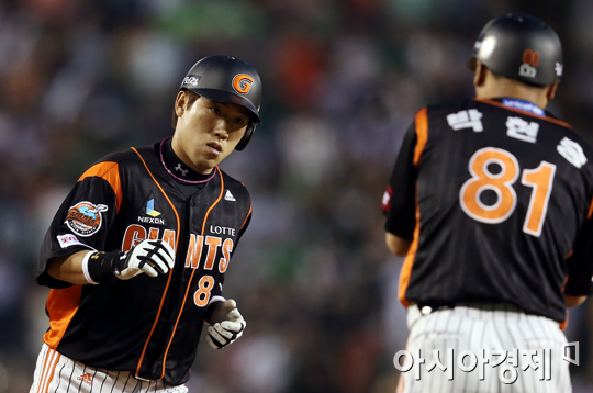 [아시아경제 정재훈 기자] 7일 오후 서울 잠실야구장에서 열린 '2013 한국야쿠르트 세븐프로야구' LG 트윈스와 롯데 자이언츠의 경기. 5회초 2사 무주자 상황 전준우가 좌중간 솔로홈런을 쳐낸 뒤 그라운드를 돌고 있다.정재훈 기자 roze@<ⓒ세계를 보는 창 경제를 보는 눈, 아시아경제(www.asiae.co.kr) 무단전재 배포금지>