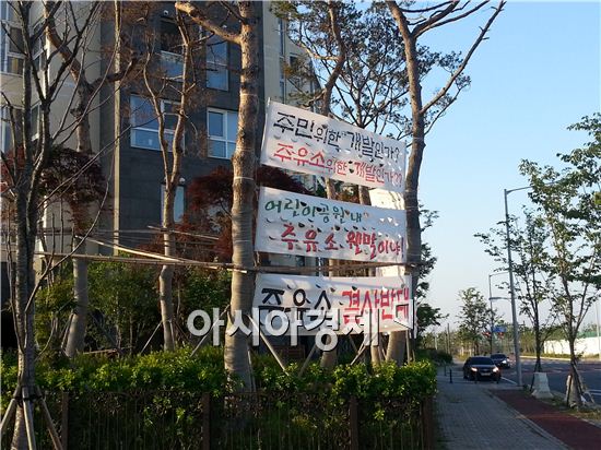 지난 3월말 시작된 주유소 공사는 입주민들의 반발이 거세지며 4월 중단됐다.