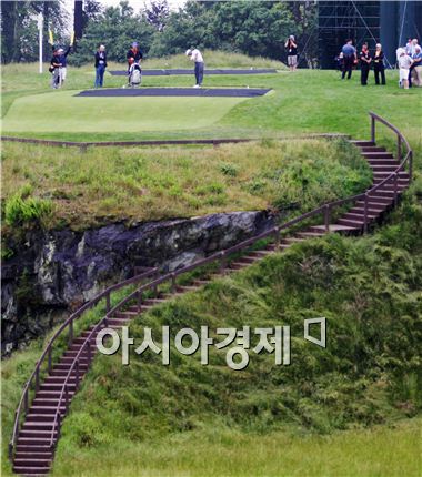 [아시아경제 김현준 골프전문기자] ○…"도대체 계단이 몇 개야?"113번째 US오픈(총상금 800만 달러)의 격전지 미국 펜실베니아주 아드모어 메리언골프장(파70ㆍ6996야드) 17번홀 전경이다. 타이거 우즈(미국)가 연습라운드 도중 티잉그라운드에서 티 샷을 하고 있다. 사진=Getty images/멀티비츠.김현준 골프전문기자 golfkim@<ⓒ세계를 보는 창 경제를 보는 눈, 아시아경제(www.asiae.co.kr) 무단전재 배포금지>
