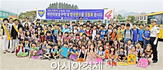 전남 함평경찰서(서장 권영만)는 13일 해보면 금덕리 해보초등학교 앞 도로에서 어린이교통사고예방을 위하여 권영만 함평경찰서장, 해보초등학교장, 녹색어머니회 등이 참여한 가운데 하굣길 어린이 대상으로 안전횡단 5원칙 이론교육 및 실습을 하고 통학로 안전확보를 위한 스쿨존 내 교통법규 준수 캠페인 및 통학차량 운용자 및 운전자상대로 어린이 승 하차확인 의무 홍보를 실시했다.