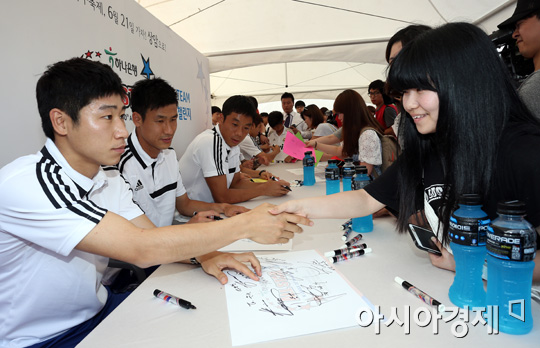 [아시아경제 정재훈 기자] 21일 오후 서울 서울월드컵경기장에서 '하나은행 K리그 올스타전 2013'을 앞두고 올스타 선수들이 팬 사인회를 진행하고 있다.정재훈 기자 roze@<ⓒ세계를 보는 창 경제를 보는 눈, 아시아경제(www.asiae.co.kr) 무단전재 배포금지>