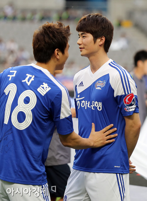 [아시아경제 정재훈 기자] 21일 오후 서울 서울월드컵경기장에서 열린 '하나은행 K리그 올스타전 2013'에서 구자철과 기성용이 대화를 나누고 있다.정재훈 기자 roze@<ⓒ세계를 보는 창 경제를 보는 눈, 아시아경제(www.asiae.co.kr) 무단전재 배포금지>