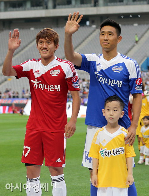 [아시아경제 정재훈 기자] 21일 오후 서울 서울월드컵경기장에서 열린 '하나은행 K리그 올스타전 2013'에서 홍철과 오범석이 인사하고 있다.정재훈 기자 roze@<ⓒ세계를 보는 창 경제를 보는 눈, 아시아경제(www.asiae.co.kr) 무단전재 배포금지>