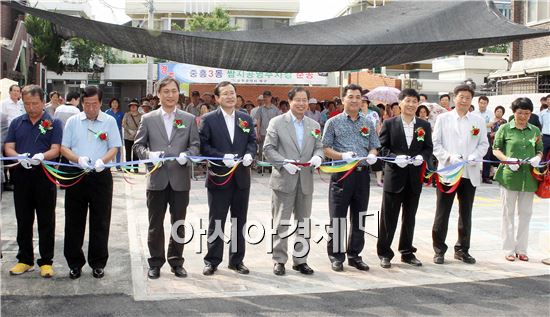 광주 북구는 지난 21일 송광운 북구청장과 구의원, 주민자치위원 등 주민 200여명이 참석한 가운데 중흥3동 무등장례식장 인근에서 쌈지공영주차장 준공식을 열고 관계자들이 테이프 컷팅을 하고 있다. 사진제공=광주시 북구 노해섭 기자 nogary@<ⓒ세계를 보는 창 경제를 보는 눈, 아시아경제(www.asiae.co.kr) 무단전재 배포금지>