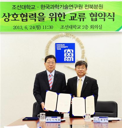 조선대학교가 한국과학기술연구원(KIST) 전북분원과 손잡고 탄소 소재 관련 전문인력 양성에 나선다. 서재홍 총장은 24일 오전 11시 30분 본관 2층 소회의실에서 황경태 KIST 전북분원장과 상호협력을 위한 교류 협약을 체결했다. 협약에 따라 조선대학교 대학원에 별도로 학,연 합동연구 석,박사 과정(이하 협동과정)을 설치하여 운영 관리한다. 탄소 소재 관련 전문인력을 양성할 협동 과정은 연구를 주 임무로 하는 KIST와 인력양성을 주 임무로 하는 대학이 협동으로 기존의 석박사 과정과 차별화된 연구중심의 새로운 고급기술 인력을 양성하기 위한 프로그램이다. 대학에서 기본교과목을 이수하고, KIST에서 연구과제 참여와 학위논문 연구를 수행한다. 다양한 연구경험이 축적된 KIST의 연구능력을 토대로 산업현장에서 즉시 활용 가능한 전문인력을 양성하고 KIST가 수행하는 국책·첨단 연구사업에 참여한 인력을 산업계에 배출함으로써 연구 성과를 산업계에 이전하는 효과가 기대된다. 전북 완주군에 자리한 한국과학기술연구원(KIST) 전북분원은 세계를 선도하는 복합재료관련 원천기술 개발을 위해 2008년 설립됐다. 탄소계 복합소재는 고강도, 초경량, 내마모, 고탄성 소재로 전후방 산업연관 효과가 크지만 이를 제조하는 데 필수적인 탄소섬유를 전량 수입에 의존하고 있어 KIST 전북분원은 최첨단 복합소재 원천기술 개발에 연구역량을 집중해 수입대체 및 신산업 창출로 국가 과학기술에 선도적 역할을 수행할 계획이다. 노해섭 기자 nogary@<ⓒ세계를 보는 창 경제를 보는 눈, 아시아경제(www.asiae.co.kr) 무단전재 배포금지>