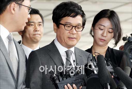 [아시아경제 최우창 기자]국내외 비자금으로 주식을 차명거래해 510억 원의 세금을 포탈하고, 회사 경비를 부풀리는 방식으로 600억 원을 횡령한 혐의를 받고 있는 이재현 CJ그룹 회장이 25일 서울 서초구 서울중앙지검으로 들어선 가운데 취재진 질의에 답하고 있다.최우창 기자 smicer@<ⓒ세계를 보는 창 경제를 보는 눈, 아시아경제(www.asiae.co.kr) 무단전재 배포금지>