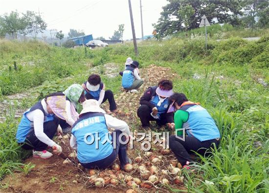 곡성군 봉사단체 '나눔봉사회'” 회원 20여명은 25일 겸면 평장리 신회식씨 농가를 찾아 양파 수확을 도왔다. 영농철을 맞아 일손부족과 비싼 인건비로 이중고를 겪고 있는 관내 농가의 어려움을 덜어주고, 농작물 수확 최적기를 놓치는 일이 없도록 하기 위해 나눔 봉사회 회원들이 두 손 걷어붙이고 나선 것. 신회식씨는 “날씨가 궂은데도 아랑곳하지 않고 도와주셔서 너무 감사하고 작은 도움이 아니라 농가에는 정말 고맙고 힘이 되는 일이다”고 말했다. 나눔봉사회는 독거노인과 장애세대 등 저소득층 세대에 매월 밑반찬 봉사를 실시하고 있으며 환경정화 활동 등을 꾸준히 실시하고 있다.노해섭 기자 nogary@<ⓒ세계를 보는 창 경제를 보는 눈, 아시아경제(www.asiae.co.kr) 무단전재 배포금지>