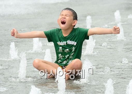 [아시아경제 백소아 기자] 서울 낮 기온이 31도를 웃돌며 무더위가 돌아온 27일 서울 세종로 광화문광장 분수에서 아이들이 옷이 젖는 것도 잊은 채 물놀이를 즐기고 있다. 기상청은 주말까지 서울의 낮 기온이 32도까지 크게 오르겠고 다음 주 초에 전국에 걸쳐 장맛비가 내리면서 더위가 한풀 꺾일 것으로 예보했다.백소아 기자 sharp2046@<ⓒ세계를 보는 창 경제를 보는 눈, 아시아경제(www.asiae.co.kr) 무단전재 배포금지>