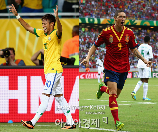 네이마르(브라질·왼쪽)-토레스(스페인·오른쪽) [사진=Getty Images/멀티비츠]