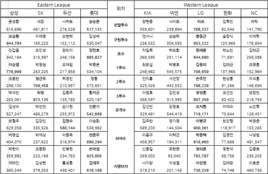 [아시아경제 이종길 기자]프로야구 LG의 돌풍이 올스타 팬 투표 독식으로 이어지고 있다. 한국야구위원회(KBO)는 10일부터 인터넷 포털 네이버와 스마트폰 애플리케이션 'KBO 프로야구 2013'를 통해 진행한 2013 한국야쿠르트 세븐 프로야구 올스타 팬 인기투표의 3차 중간집계 결과를 1일 발표했다. 첫 주부터 웨스턴리그(KIA·LG·한화·넥센·NC) 각 부문을 싹쓸이한 LG 선수들의 인기는 지난주에도 건재했던 것으로 나타났다. 레다메스 리즈(선발투수), 현재윤(포수), 김용의(1루수), 손주인(2루수), 정성훈(3루수), 오지환(유격수), 이진영(지명타자) 이병규, 박용택, 정의윤(이상 외야수) 등이 모두 자리를 굳혔다. 특히 구원투수 부문의 봉중근은 유효표 179만2166표 가운데 95만3222표를 얻어 지난주까지 전체 선두를 달린 이스턴리그(삼성·SK·롯데·두산) 구원 부문의 오승환(94만4784표)을 제치고 최다 득표의 주인공으로 올라섰다. 지난 시즌 강민호(롯데)가 얻은 역대 최다 득표 기록(89만2천727표)을 일찌감치 넘어서며 절정의 인기를 과시하고 있다.흐름이 유지될 경우 올스타전은 2년 연속 특정 구단만을 위한 무대로 전락할 수 있다. 지난 시즌 롯데는 올스타 투표 10개 부문을 싹쓸이해 적잖은 논란을 빚었었다. 7일 오후 6시 마감되는 최종결과는 8일 발표된다.프로야구 올스타전 팬 인기투표 3차 집계 현황