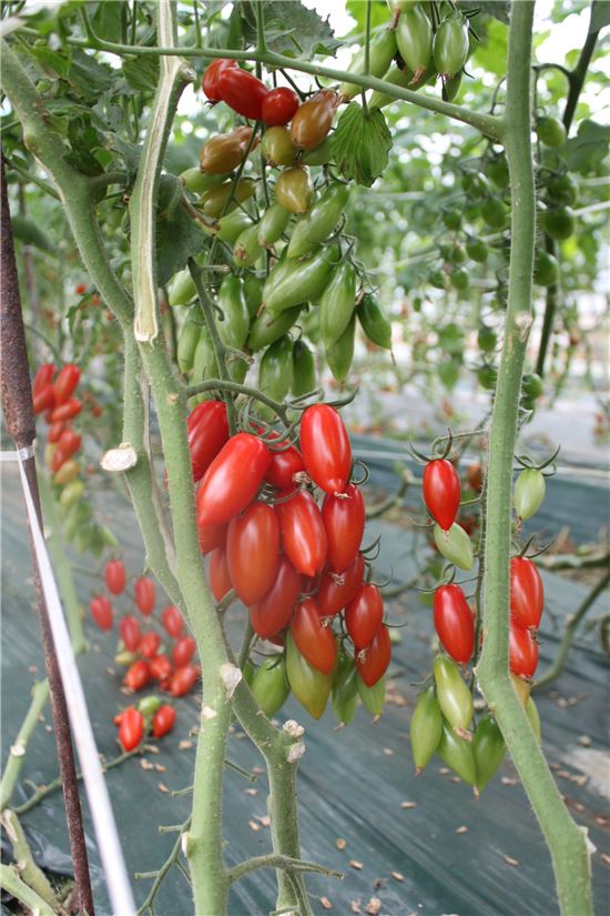 [아시아경제 이영철 기자] 길쭉한 고추모양의 방울토마토가 개발됐다.농촌진흥청과 충남도농업기술원이 공동연구로 개발한 방울토마토 신품종 ‘에티켓’은 고추를 닮은 모양으로 수량이 많고 모양이 긴 게 특징이다.특히 당도가 높고 맛이 부드러워 후식은 물론 식재료로도 쓸 수 있어 토마토 소비와 농가소득 증대가 기대된다. 2일 충남도농업기술원에 따르면 ‘에티켓’은 도농업기술원의 지도를 받아 부여군 구룡면과 청양지역을 시작으로 재배하고 있다.‘에티켓’을 재배하는 김덕수(46·부여군)씨는 “모양이 예쁘고 과실크기가 일정하며 색깔과 수량이 좋아 농가수입이 늘 수 있는 품종”이라고 평가했다.이희경 부여토마토시험장 연구사는 “앞으로 컬러토마토와 크기가 큰 토마토 등 새 품종을 개발, 농가소득에 도움이 되도록 하겠다”고 말했다.이영철 기자 panpanyz@<ⓒ세계를 보는 창 경제를 보는 눈, 아시아경제(www.asiae.co.kr) 무단전재 배포금지>