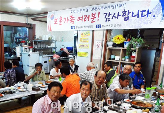 광주시 광산구 평동사회단체협의회(회장 김익찬)는 4일 참전유공자와 가족 등 20여 명을 초청해 보훈가족 만남의 날 행사를 가졌다. 이번 행사는 평동상가번영회(회장 홍경희)의 후원으로 마련됐으며, 보훈가족과의 대화시간과 점심식사 및 선물증정 순으로 진행됐다. 김익찬 평동사회단체협의회장은 “몸이 불편해 부득이하게 함께 하지 못한 보훈가정은 직접 찾아가 방문상담을 실시하는 등 지속적으로 관심을 가질 계획이다”고 밝혔다. 노해섭 기자 nogary@<ⓒ세계를 보는 창 경제를 보는 눈, 아시아경제(www.asiae.co.kr) 무단전재 배포금지>
