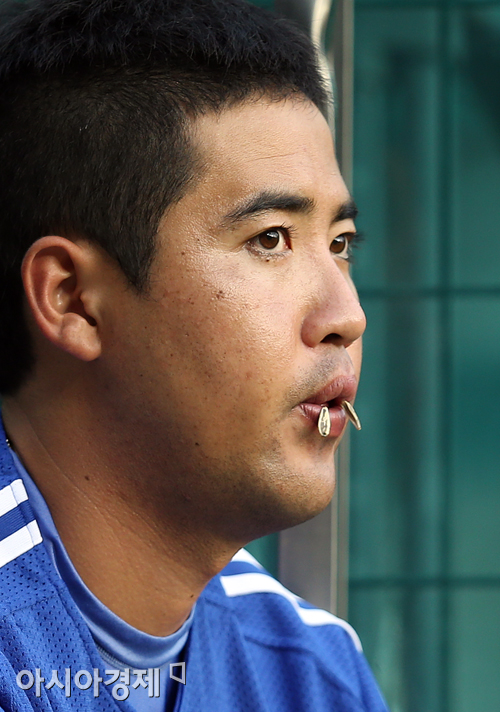 [아시아경제 정재훈 기자] 6일 오후 서울 잠실야구장에서 열린 '2013 한국야쿠르트 세븐 프로야구' 두산 베어스와 삼성 라이온즈의 경기. 장원삼이 덕아웃에서 해바라기씨를 먹으며 경기를 지켜보고 있다.정재훈 기자 roze@<ⓒ세계를 보는 창 경제를 보는 눈, 아시아경제(www.asiae.co.kr) 무단전재 배포금지>