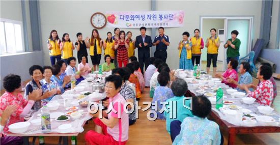장흥군 다문화가족지원센터(센터장 최선자) 다문화 가정 여성들이 '무궁화봉사단'을 결성해 활발하게 활동하고 있어 지역주민들에게 큰 호평을 받고 있다.이 무궁화봉사단은 고국을 향한 그리움을 지역 어르신을 섬기면서 달래고 싶다며 지난 3월 40여명의 다문화가정 여성들이 뜻을 같이해 결성됐다.이들은 장흥읍 주공2차 경로당과 용산면 운주리 경로당을 방문, 손수 정성 들여 만든 음식을 대접해 어르신들로부터 호평을 받았다.또한 관산읍 삼산면 산동마을 여자경로당을 찾아 우천으로 잠시 바쁜 농사 일손을 멈추고 계시는 30여명의 어르신들에게 '소머리국밥' 을 현지에서 끓여 점심 대접을 하는 모습에서 어르신들을 섬기는 며느리로써 손색이 없었다는 것.