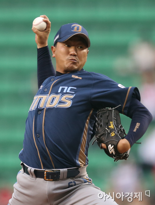 [아시아경제 정재훈 기자] 10일 오후 서울 잠실야구장에서 열린 '2013 한국야쿠르트 세븐 프로야구' LG 트윈스와 NC 다이노스의 경기. NC 선발투수 손민한이 역투하고 있다. 정재훈 기자 roze@<ⓒ세계를 보는 창 경제를 보는 눈, 아시아경제(www.asiae.co.kr) 무단전재 배포금지>