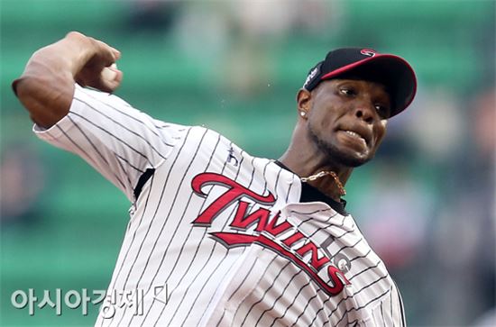 [아시아경제 정재훈 기자] 10일 오후 서울 잠실야구장에서 열린 '2013 한국야쿠르트 세븐 프로야구' LG 트윈스와 NC 다이노스의 경기. LG 선발투수 리즈가 역투하고 있다. 정재훈 기자 roze@<ⓒ세계를 보는 창 경제를 보는 눈, 아시아경제(www.asiae.co.kr) 무단전재 배포금지>