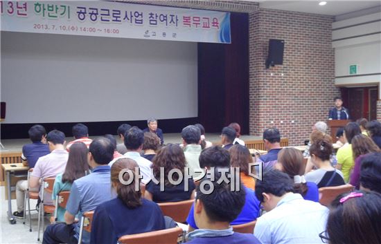 고흥군(군수 박병종)은 2013년 하반기 재정지원 일자리 창출사업 일환으로 추진한 공공근로 사업 참여자 70여명을 대상으로 복무교육과 안정적이고 지속가능한 일자리 제공을 위한 취업지도 교육을 실시했다.고흥군은 정부가 국가 경제력의 기반이 되는 것은 일자리 창출을 통한 고용율을 높이는데 있다는데 인식을 함께하고 고용정책을 국정의 최우선 과제로 추진함에 따라 관내 기업체에서 겪고 있는 인력난의 어려움을 조금이나마 해소하고자 군· 읍면에 취업지원 상담 창구를 개설 운영하고 순천고용센터와 고용 시스템을 연계해 나가고 있다.이를 위해 그 동안 추진한 재정지원 일자리 사업이 일정기간 내 단순 반복적인 작업 구조로 참여자의 생활 안정에 도움이 되지 못하고 있음에 따라 참여자가 안정적인 일자리를 가질 수 있도록 관내 기업체의 취업 연계 시스템을 마련하여 일자리를 제공, 여건을 조성해 나가 사업의 효율성 제고와 지역사회에 공헌할 수 있는 다양한 방안을 마련해 나갈 계획이다.군 관계자에 따르면 “금년도 재정지원 일자리 참여자에 대한 D/B를 구축, 취업 정보를 수시로 제공하고 사업 참여자에 대하여 관내 기업체에 취업을 유도하여, 안정적이고 지속가능한 일자리를 제공해 나가는데 크게 기여할 것으로 기대한다”고 밝혔다. 곽경택 기자 ggt1359@ <ⓒ세계를 보는 창 경제를 보는 눈, 아시아경제(www.asiae.co.kr) 무단전재 배포금지>