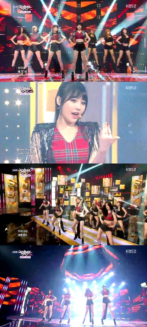 [아시아경제 이금준 기자]매력적인 네 구미호가 남성 팬들의 마음을 제대로 홀렸다. 걸스데이가 '여자 대통령'으로 눈과 귀를 사로잡은 것.걸스데이는 12일 오후 방송한 KBS2 '뮤직뱅크'에 출연해 정규 1집 리패키지 타이틀 곡 '여자 대통령'을 열창했다. 이날 표범무늬 의상을 입고 등장한 걸스데이 멤버들은 발랄하면서도 섹시한 매력을 뽐냈다. 타이틀곡 '여자 대통령'은 사랑을 얻기 위해 먼저 다가가는 당돌함과 용기 있는 여자가 되자는 노랫말이 인상적인 곡. 가슴을 확 휘어잡는 멜로디와 절로 리듬을 타게 만드는 랩의 조화가 일품이라는 평이다.한편, 이날 '뮤직뱅크'에는 씨스타, 다이나믹듀오, 포미닛, 걸스데이, 에일리, 엑소, 쥬얼리, 로이킴, 에이핑크, 달샤벳, 긱스, 존박, 써니힐, 에이젝스, 베스티, 방탄소년단, 미스터미스터, 박새별, 스텔라, 투아이즈 등이 출연했다.이금준 기자 music@<ⓒ아시아경제 & 스투닷컴(stoo.com)이 만드는 온오프라인 연예뉴스>