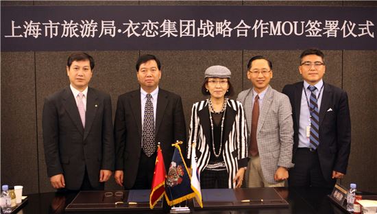 왼쪽에서 순서대로 상해시 여유국 국제여행 촉진처 리빈청, 중국 국가여유국 서울 지국장 판쥐링, 박성경 이랜드그룹 부회장